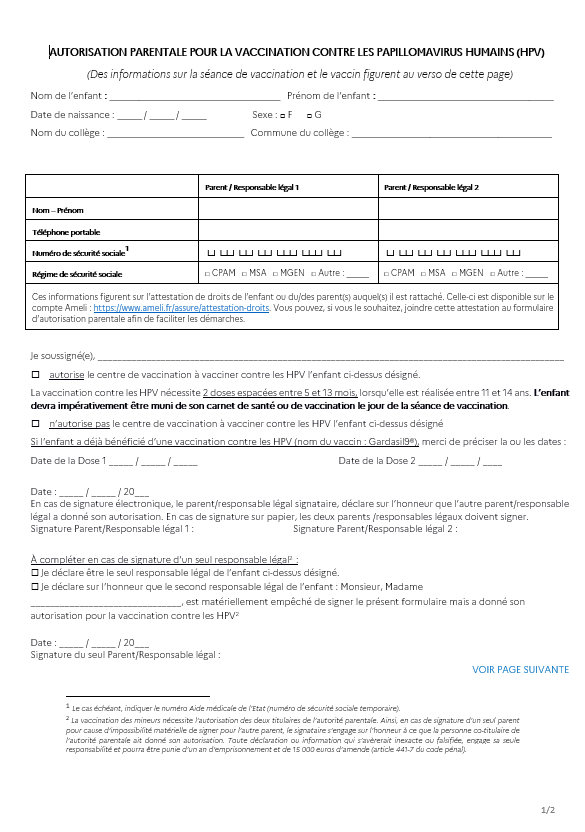 HPV : Comment remplir l’autorisation parentale papier ? Version française