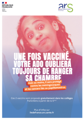 Le kit communication de l’Agence régionale de santé Île-de-France est composé d’une affiche, ainsi que d’une plaquette d’information à destination des parents.